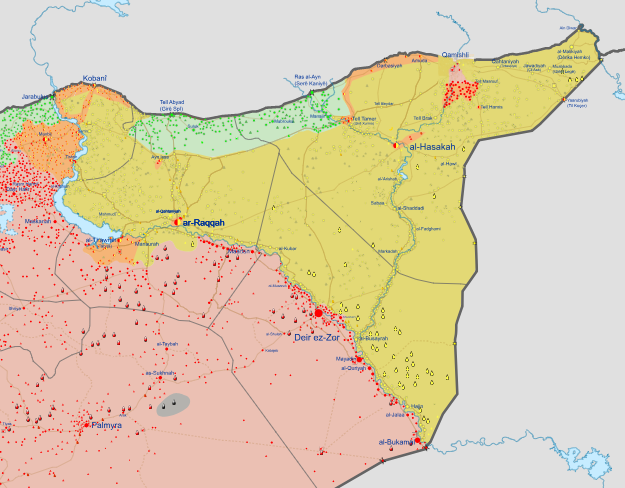 Fair amount of territorial equilibrium, though recent reports of SNA pushing back some YPJ. There’s heavy drone use, shelling, Russia & SAA forces are here in force in addition to the SDF and increasing SNA/TFSA presence.